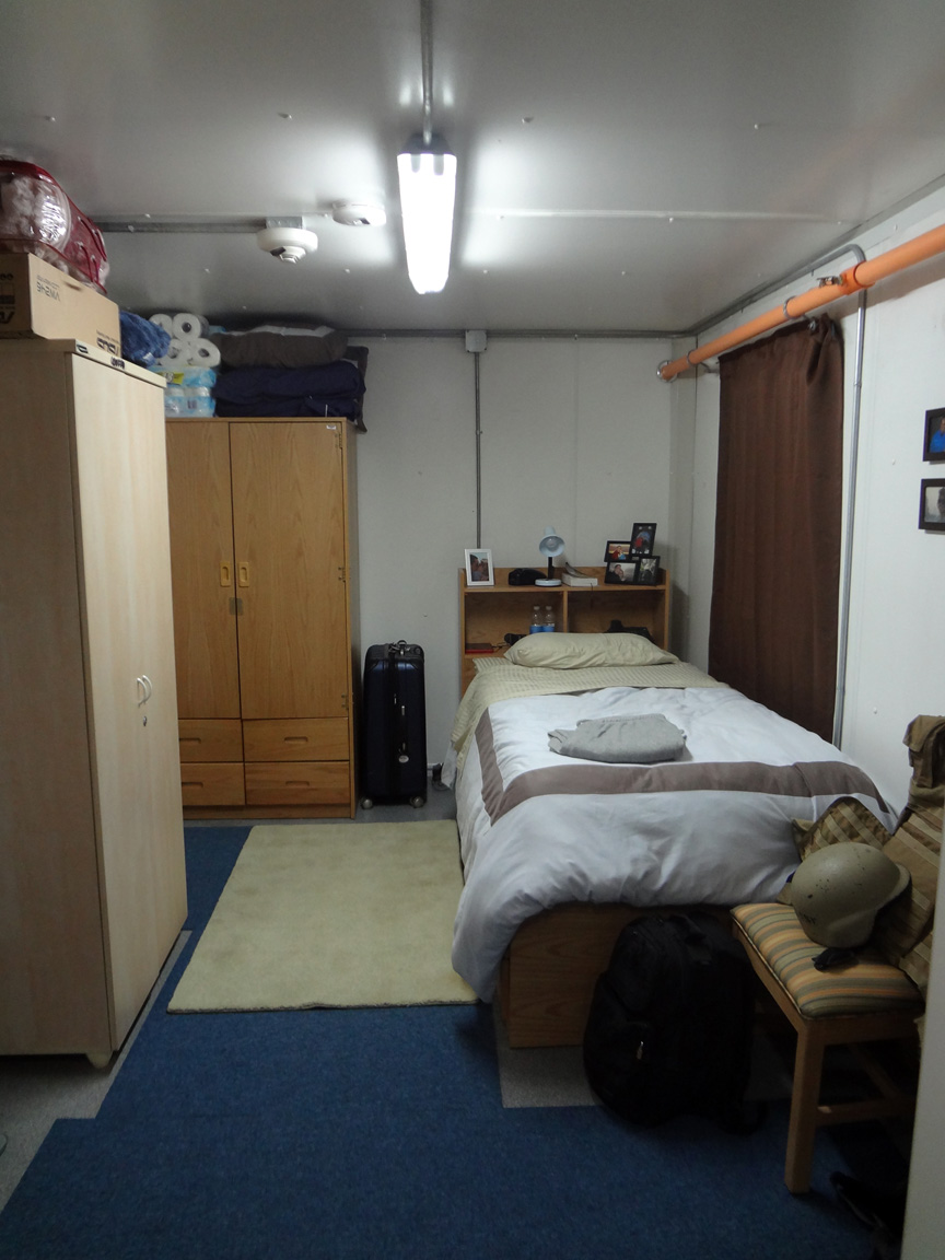 I don’t get to have nearly as much fun during my groundhog day as Bill Murray did with Punxsutawney Phil or eating all the food he wanted without any repercussions, I do, however, live the same day in and out like in the movie.  I wake up, workout, get cleaned up, get breakfast, go to work, then lunch, then work, then dinner, then to my CHU (that’s a containerize housing unit, you can see some pictures below of my CHU) to “relax” and then sleep — only to wake up and do it all over again.  My one reprieve from this insane scenario is on Saturday, when I get to experience my one day off.   I get to sleep in and afterwards I get some brunch and Skype with my wife (best part of my week by far).  The rest of my Saturday usually consist of me doing my laundry and  trying to veg as much as possible before church in the evening.  And then my whole groundhog week repeats again. And again.  And again.
