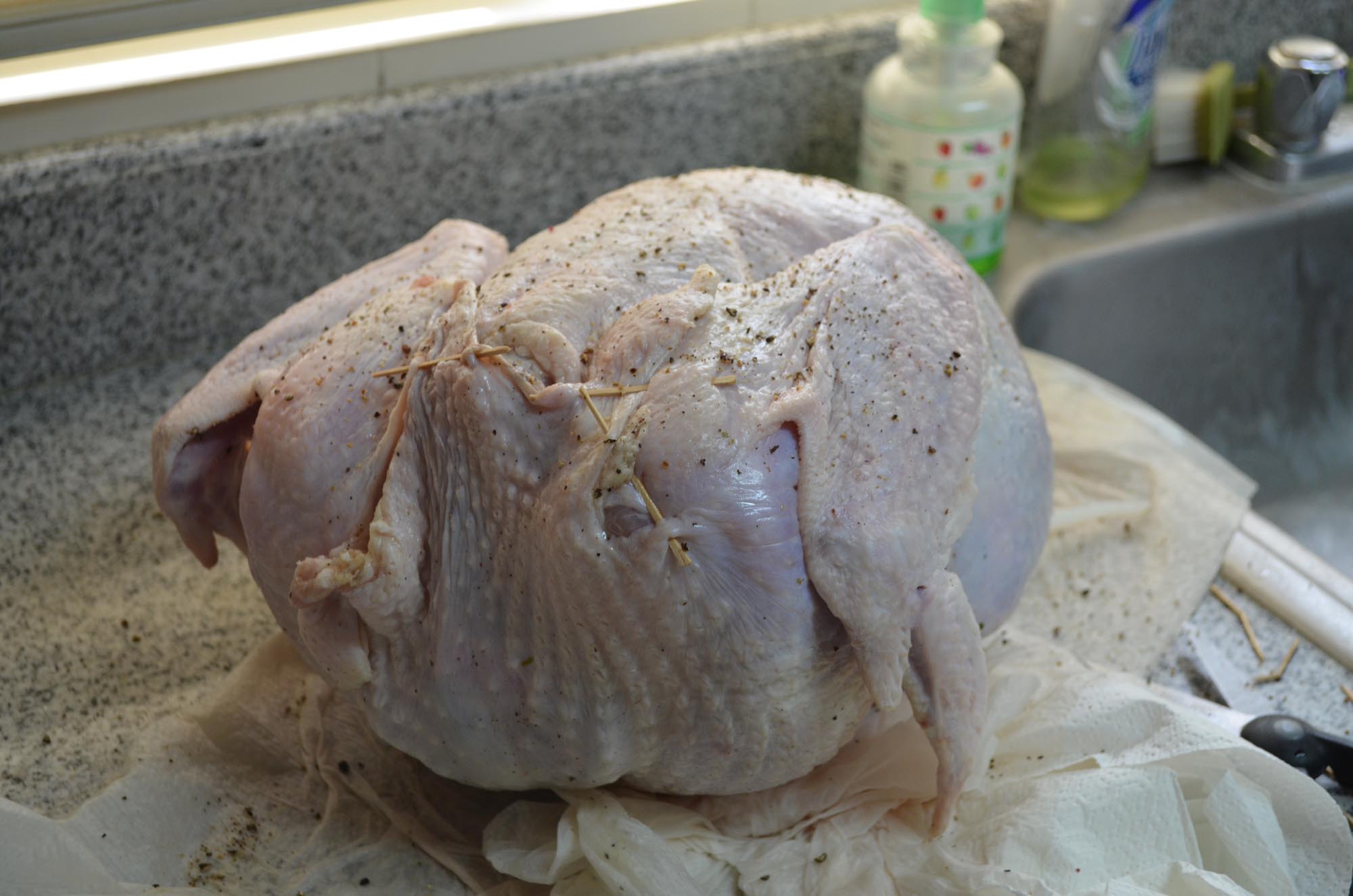I rinsed the turkey in cold water and took out all the nasty parts that were stuffed inside. Blech! I can’t even tell you how many times I washed my hands throughout this process. Really. I lost count.